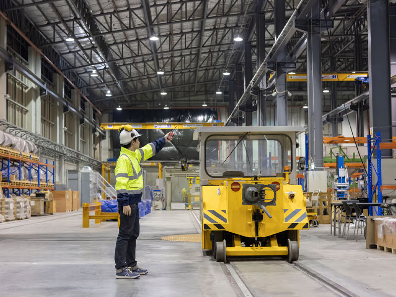 A Rail Guided Vehicle (RGV) is an automated material handling device capable of transporting goods along fixed tracks and performing fully automatic unloading. To improve the operational efficiency and safety of RGV robots, communication technology plays a critical role in their application.