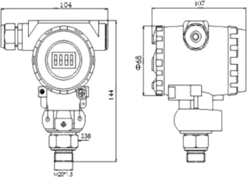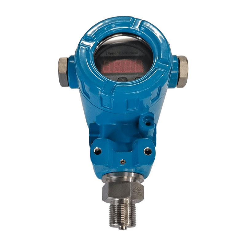 The explosion-proof digital display AI-TD pressure transmitter uses a silicon pressure sensor with a stainless steel diaphragm as the signal measurement element and employs a dedicated IC circuit for zero-point and temperature performance compensation over a wide temperature range. This pressure transmitter features an LCD digital display and is explosion-proof certified.