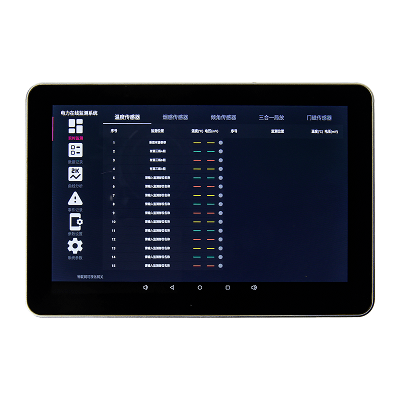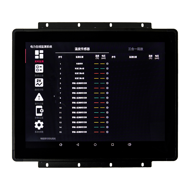 The KL-MT89MP touchscreen wireless temperature measurement host is an industrial-grade 10-inch touchscreen host equipped with a standard communication interface, supporting network operation and capable of receiving data from wireless temperature sensors. Simultaneously, with the help of host computer software, the host can record real-time operating temperature data of high-voltage equipment, enabling proactive maintenance of high-voltage equipment for thermal failures and providing historical data for high-voltage equipment repair.